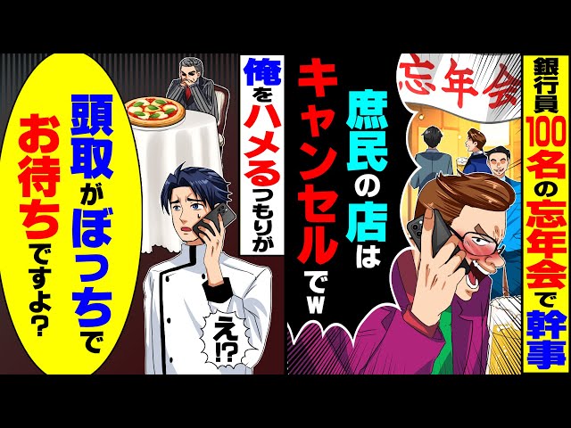【スカッと】銀行の忘年会100名分を予約したDQN幹事「やっぱ高級フレンチでしょ!庶民のピザ屋はキャンセル」→俺「もう頭取がお待ちですよ?」【漫画】【漫画動画】【アニメ】【スカッとする話】【2ch】