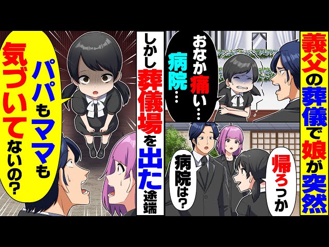 【スカッと】義父の葬儀中に娘が突然「パパ、おなかが痛い!病院に連れて行って!」→慌てて娘と退席すると「パパもママも気づいてないの?」実は…【漫画】【漫画動画】【アニメ】【スカッとする話】【2ch】