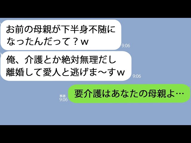 【LINE】母親が下半身不随になったことを伝えると夫「介護とか無理だから離婚な」→お望み通り即離婚した結果…w