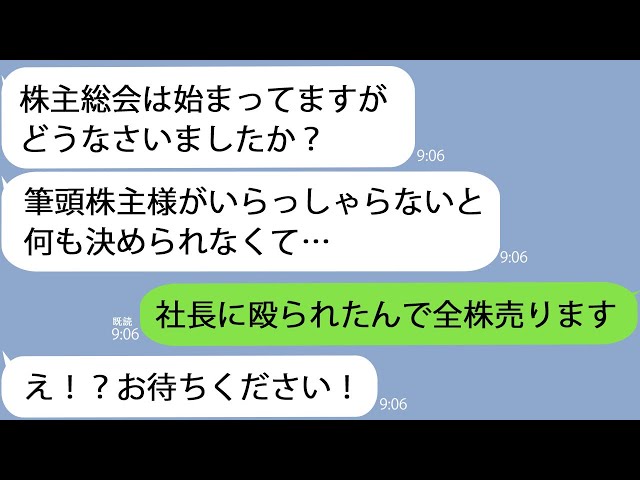 【LINE】中卒の俺が株主総会に行くと社長に殴られた…俺「全株を売却します」→俺が筆頭株主だと気づいて…w