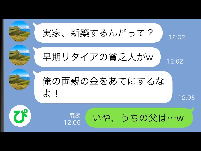 【LINE】実家を新築することにした私の両親→すると夫が「早期リタイアの貧乏人がw 俺の両親の金をあてにするなよ!」この後、勘違い夫が土下座する事態にww【スカッと修羅場】