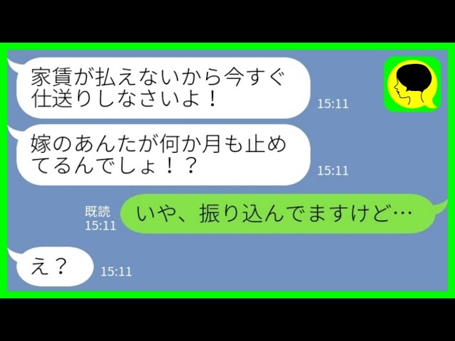 【LINE】義母から突然のブチ切れ連絡「何か月も仕送りが来てない!家賃が払えないから今すぐ振り込め!」私「振り込んでますけど…?」→消えた仕送りに嫁がブチギレた結果www