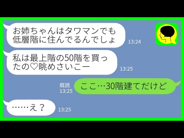 【LINE】私がタワマンに住み始めたと知った妹からマウント連絡「最上階の50階を買ったから♡」私「ここは30階建てだけどw」→その後、慌てて不動産に連絡した妹が泣きついてきた理由がwww