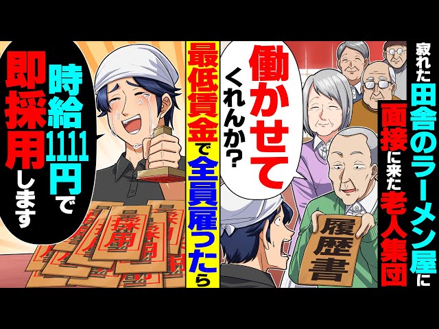 【スカッと】田舎の寂れたラーメン屋に面接に来た老人集団「働かせてくれんか?」→時給1111円で全員まとめて即採用した結果【漫画】【漫画動画】【アニメ】【スカッとする話】【2ch】