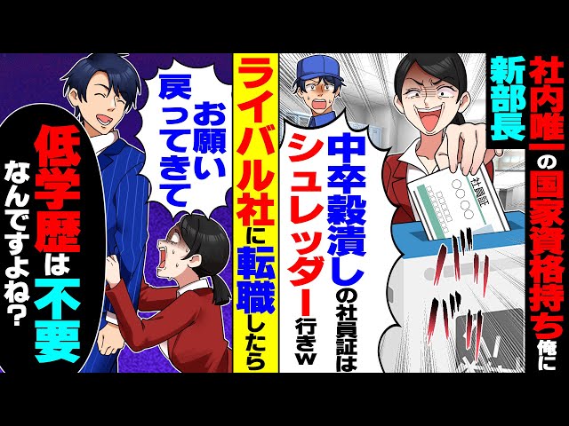【スカッと】新任の女部長「中卒の社員証はシュレッダー行きねw」→社内唯一の国家資格持ちの俺がライバル社に転職した結果【総集編】【漫画】【漫画動画】【アニメ】【スカッとする話】【2ch】