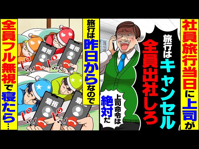 【スカッと】社員旅行当日に上司「旅行はキャンセルだ!全員出社しろ!」→昨日から旅行なので上司をフル無視して全員で寝たら…【漫画】【漫画動画】【アニメ】【スカッとする話】【2ch】