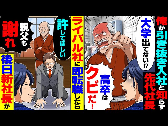 【スカッと】俺が引き抜き入社と知らず先代社長が「大学出てないだと!?高卒はクビだ!」すぐに退職届を書いてライバル社に転職したら後日、新社長が…【漫画】【漫画動画】【アニメ】【スカッとする話】【2ch】