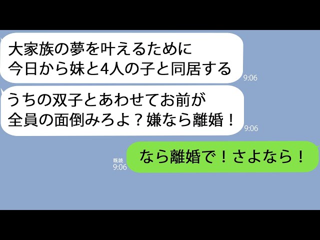 【LINE】1歳双子がいる我が家に返品された義妹と4人の子を連れてきた夫「今日から大家族だ!嫌なら離婚な?」私「離婚一択!」→秒で出て行った結果w