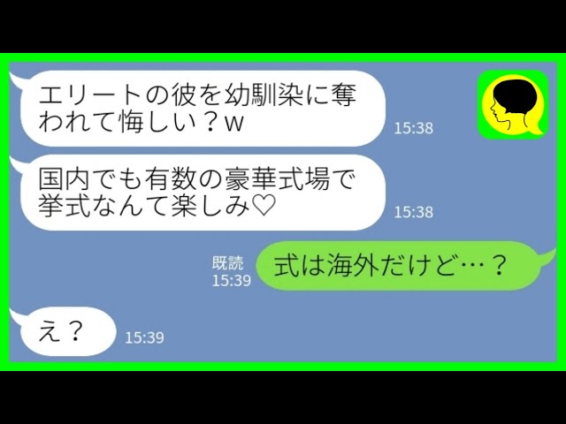 【LINE】結婚式当日に新郎を奪った幼馴染から勝利宣言「エリートの彼と結婚して幸せになるのは私だから♡」私「式は海外だけど…?」→式場乱入女の末路がwww